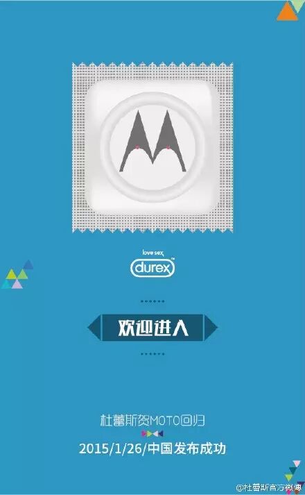 1.26日,摩托罗拉回归中国,杜蕾斯道贺。