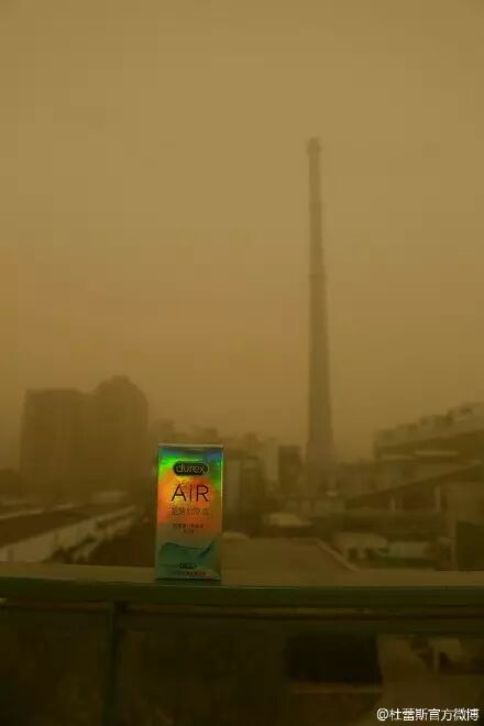 4月15日,沙尘暴袭京,杜蕾斯给新品air写的文案。