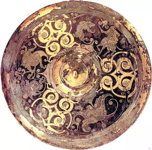 ▲ 洛阳金村出土战国刺虎纹铜镜
