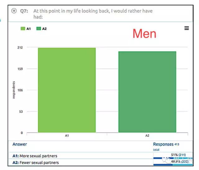 同样,30%的妹子们曾战过8人以上,只有43%的妹子过不到3人。