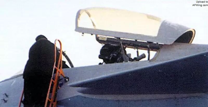 尾部铰接的座舱盖看起来和米格-29的很像,但开启方式不同,座舱盖先稍稍向上抬起再向后打开。座舱盖后面是一条相当肥大的脊背,以后可能进一步扩大用于容纳附加燃油或航电。