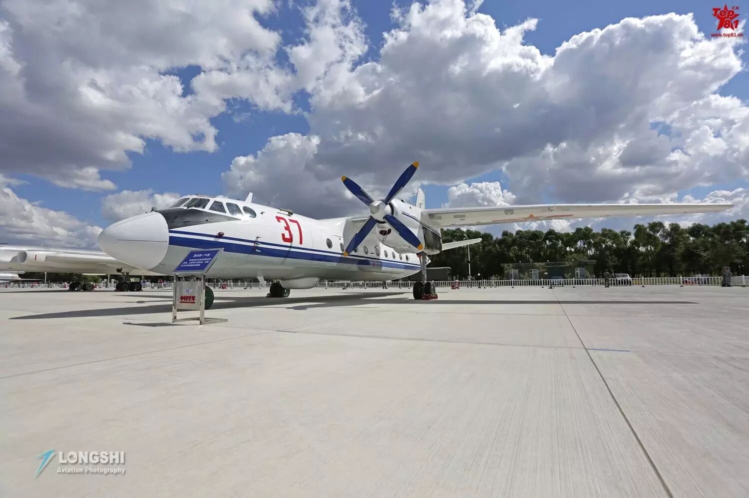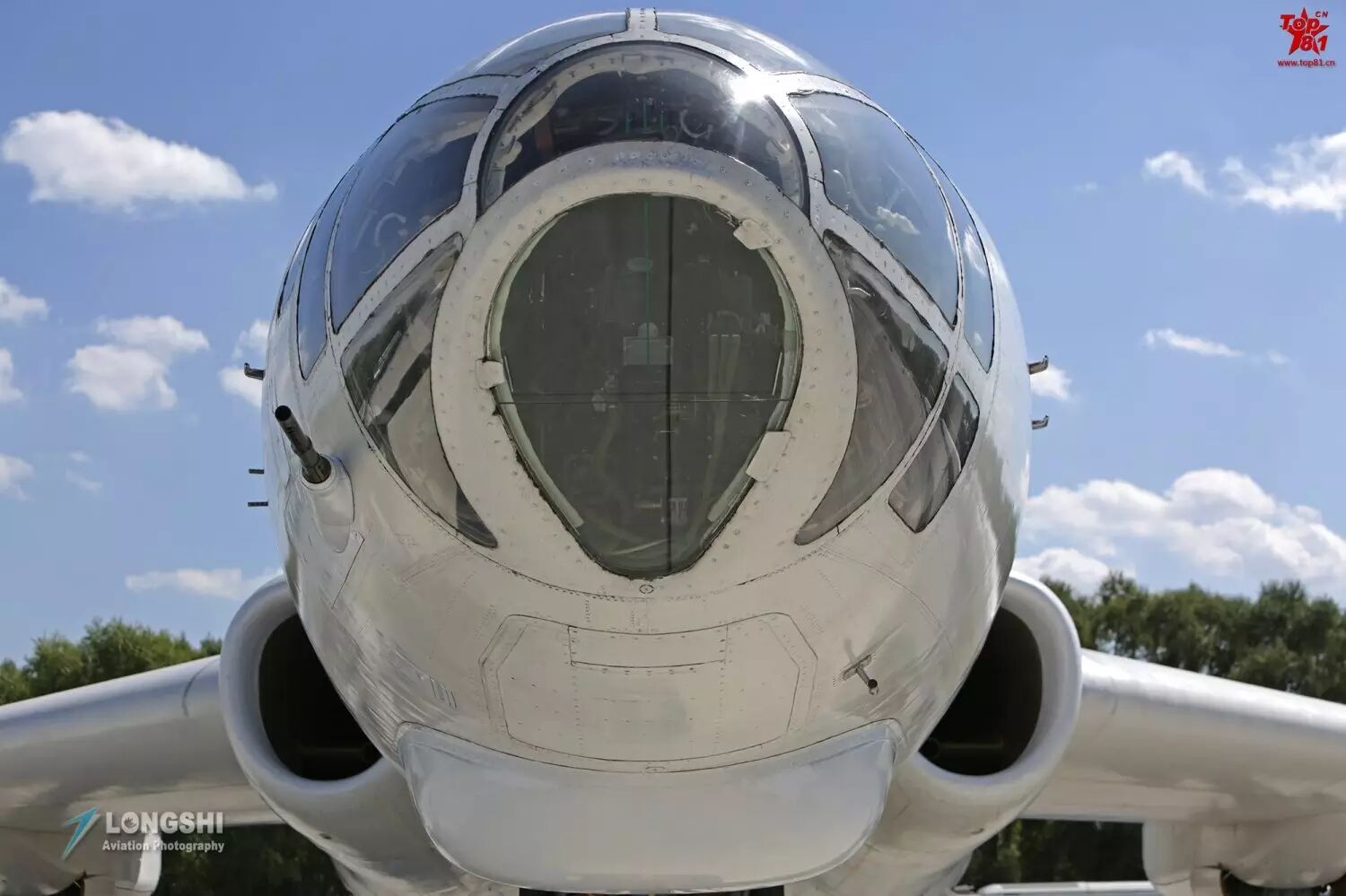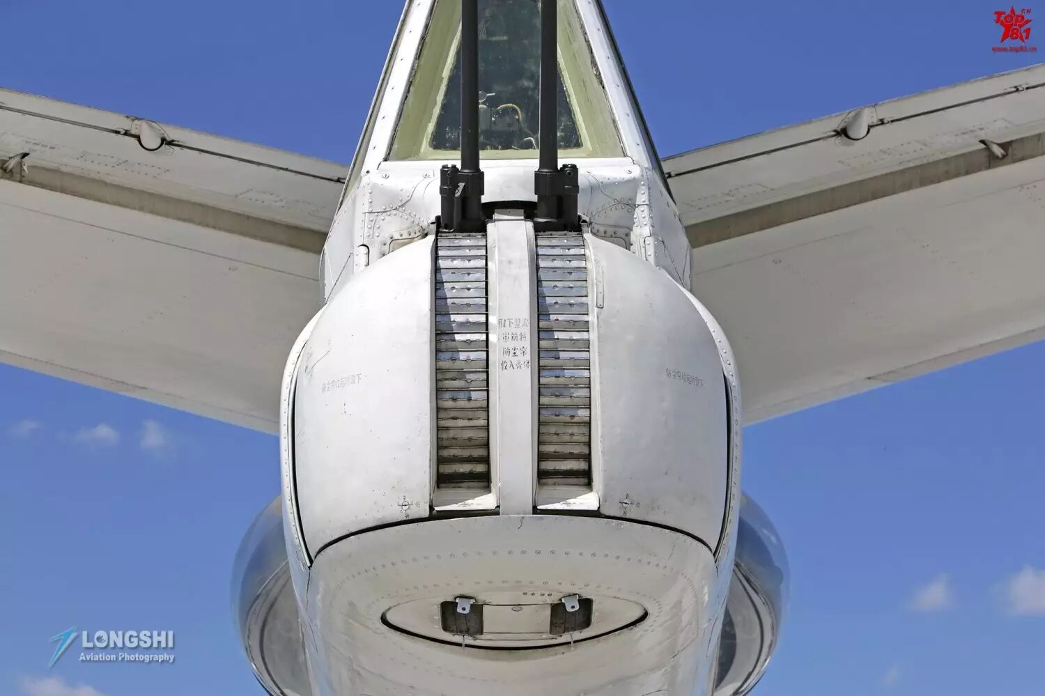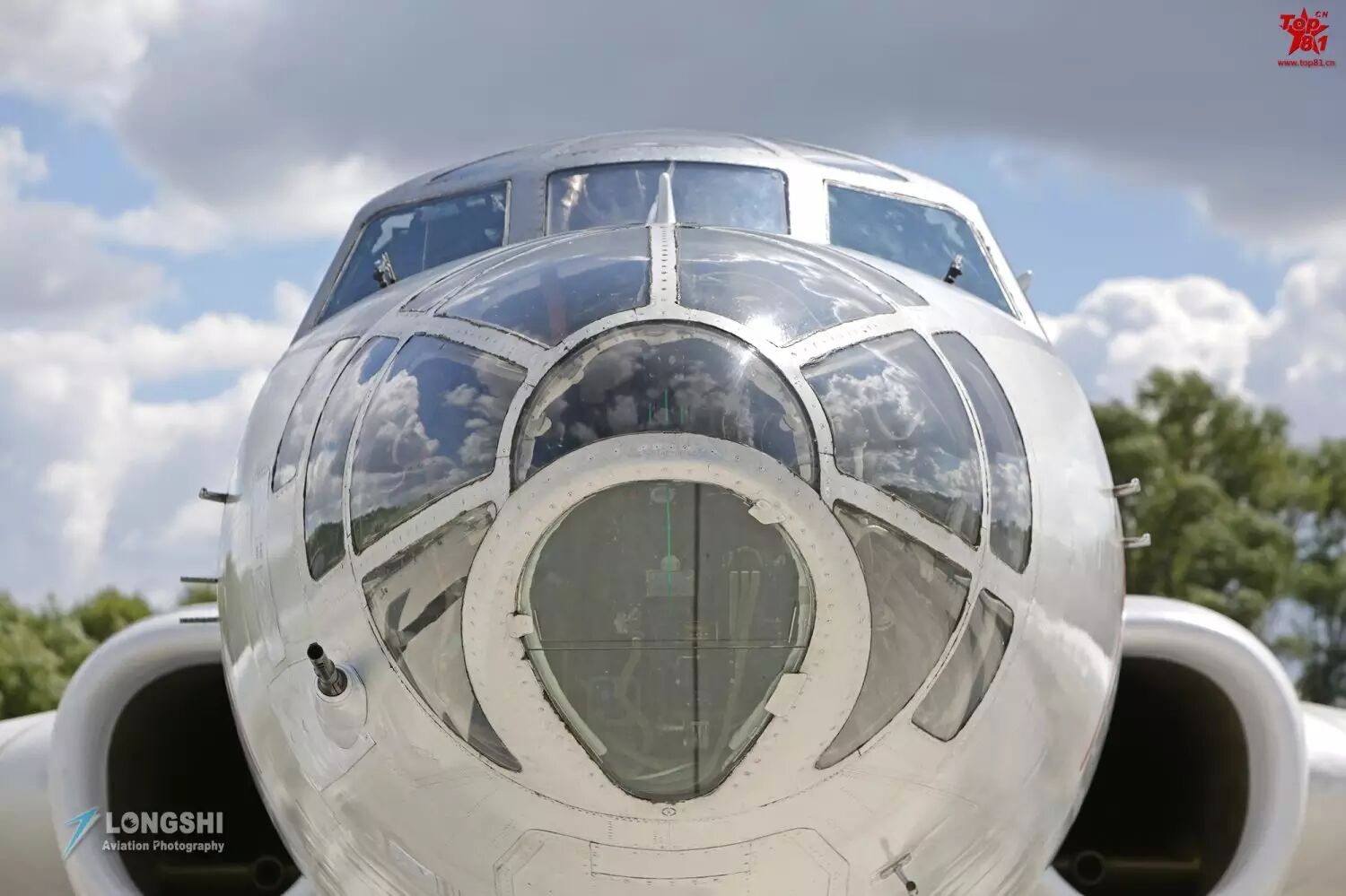 地面静展的运-7轰炸机机组训练机,有侧机身弹舱和机腹雷达