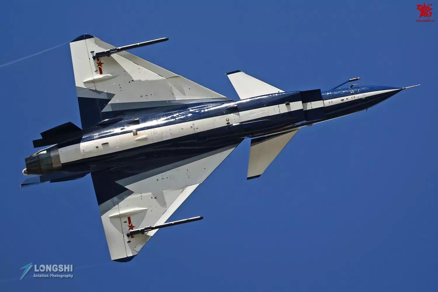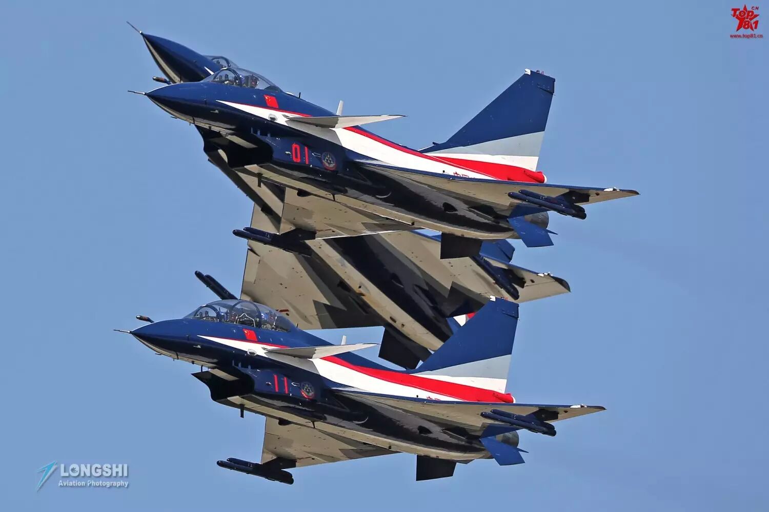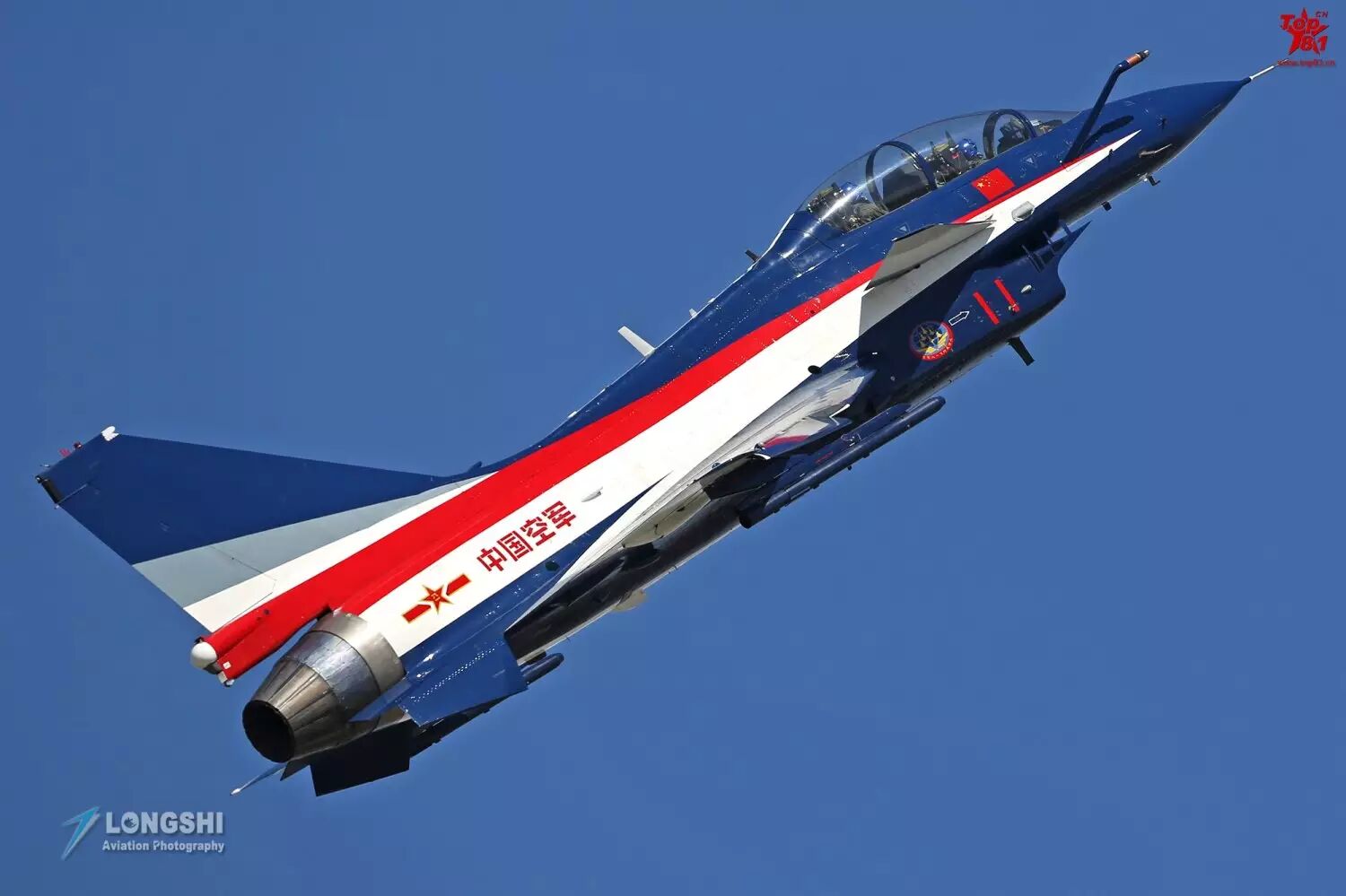 “八一”飞行表演队的歼-10SY在晴朗的天空下闪闪发光