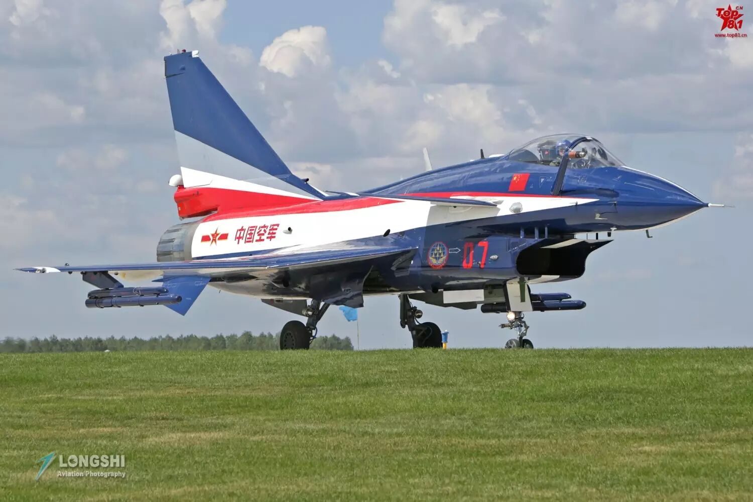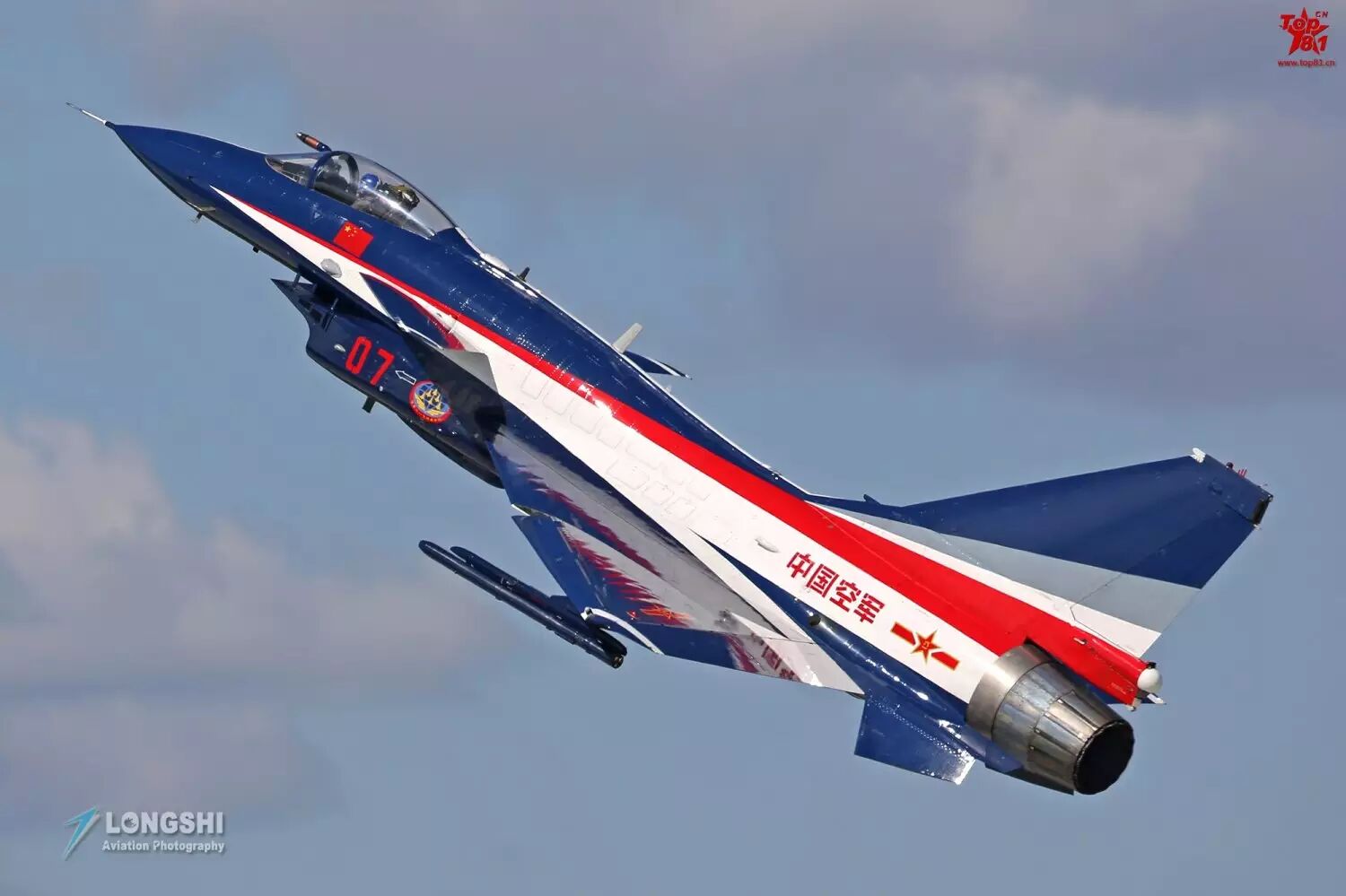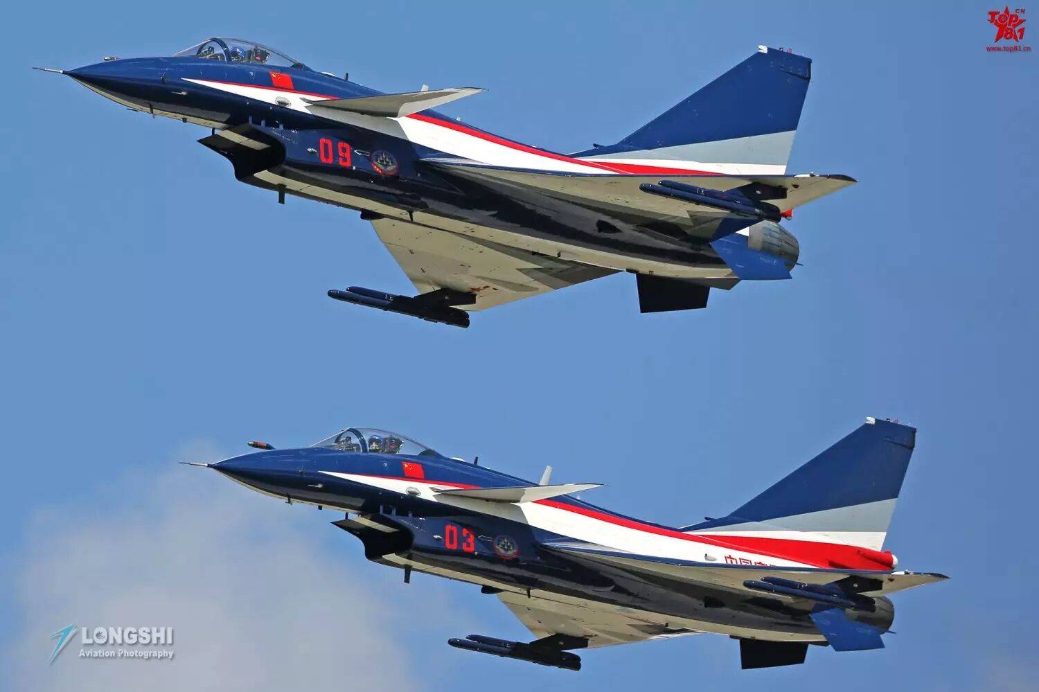 “八一”飞行表演队的歼-10SY在晴朗的天空下闪闪发光