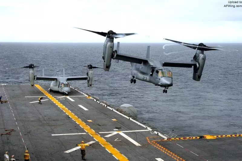 在“美国”号的搭配中,MV-22作为垂直登陆的主力