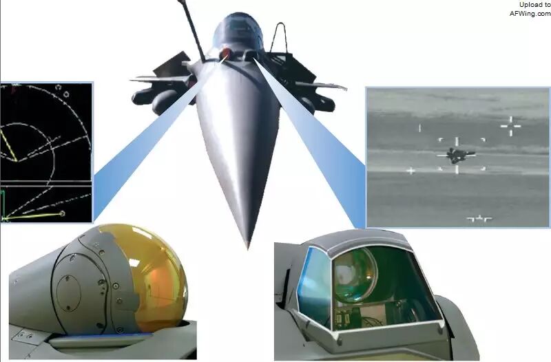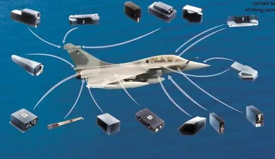 “阵风”机鼻的前扇区光电(FSO)套件包括了用于单目标识别的高倍率电视传感器,以及用于多目标探测的球型红外搜索和跟踪传感器。泰雷兹“达摩克利斯”吊舱除了可以用激光瞄准目标外,也能把生成的前视红外影像显示在平显上。“阵风”还可以在机腹中线挂载RECO