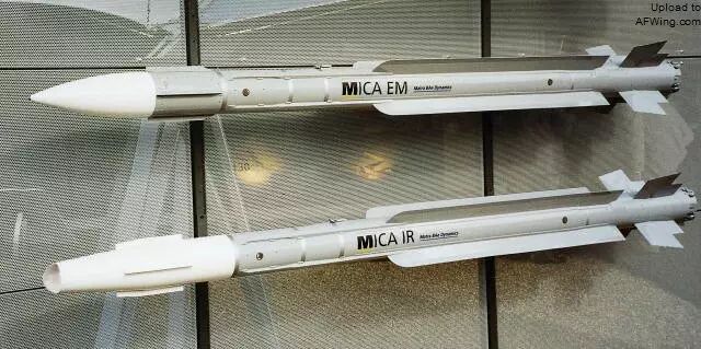 “阵风”的主要空空武器是MBDA公司的“米卡”红外或雷达制导导弹,同一家公司研制的“流星”远程空空导弹将在2016年开始装备“阵风”。“阵风”的内部武器是一门备弹125发的30mm机炮。