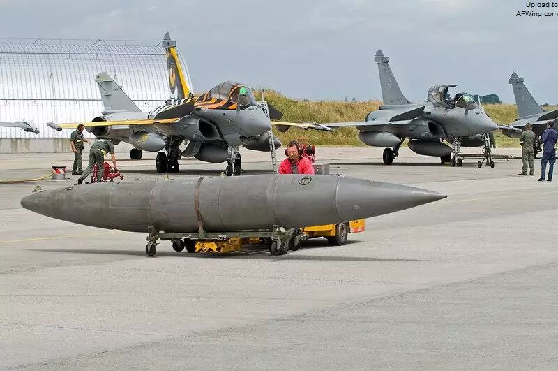 对于对地攻击任务,“阵风”可挂GBU-12/22/24激光制导炸弹。此外该机还可挂载萨基姆公司的113千克AASM炸弹,该弹相当于美国波音公司的JDAM炸弹,不过具有用于增加射程的尾部火箭助推器,AASM可用GPS或红外引导头进行末端制导。“阵风”的翼下挂架可以同时挂3枚AASM,在投掷多枚炸弹时,每一枚都能通过预编程攻击各自的目标。在阿富汗,法国大兵称AASM为“魔术炸弹”。