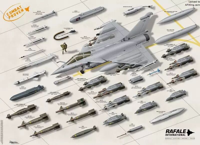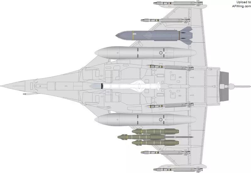 “阵风”专为昼夜隐蔽低空穿透任务进行了优化设计,最多可挂载9.5吨外部载荷,与F-15E重型战斗机相当。该机的基本空重是10.3吨,内油4.7吨,最大起飞重量24.5吨,计入内油重量后,“阵风”可承受相当于自身空重140%的载荷投入战斗。