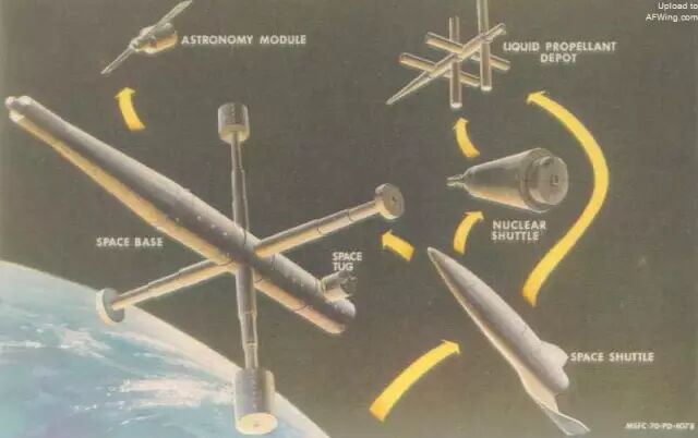 1969年太空任务小组设想的“空间基础设施”蓝图,已经具有了航天飞机的雏形
