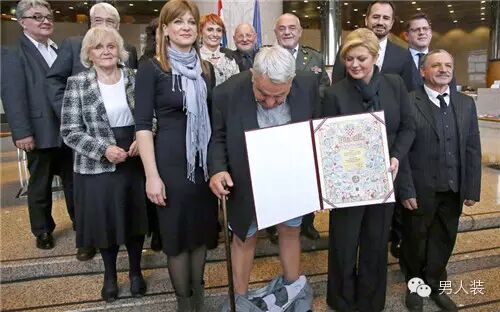 去年克罗地亚的国家人权日(12月10日),当接受这位美女总统的颁奖时,克罗地亚人权委员会主席(的裤子)老实地瘫软了,而这一幕被早已埋伏在附近的法新社(AFP)摄影记者果断摄下。