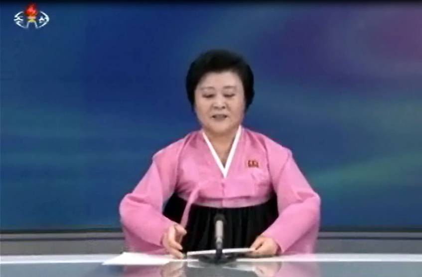 ▲ 朝鲜著名主播李春姬播报氢弹试爆成功的新闻