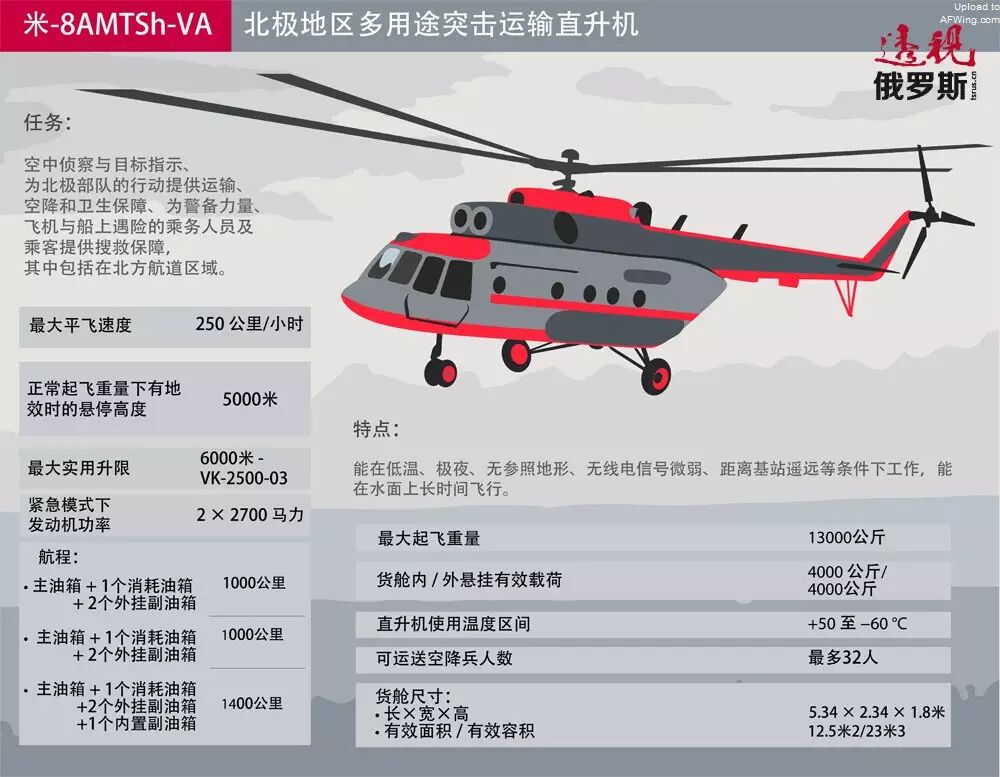 用于特种部队行动组的空降、空中支持及撤退,用于进行空中侦察和目标指示,为北极部队行动提供运输、空降和卫生保障以及警备力量的搜救保障,其中包括在北方航道区域。