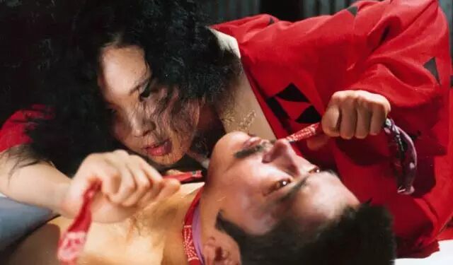 骇世名片《感官王国》,日文名为《爱的斗牛》(愛のコリーダ),是日本影像史上第一部“本番”电影。所谓“本番”,是相对于“拟似”而言,即拍摄男女演员真正的性场面,而不是使用美术技巧或摄影技巧达到效果。