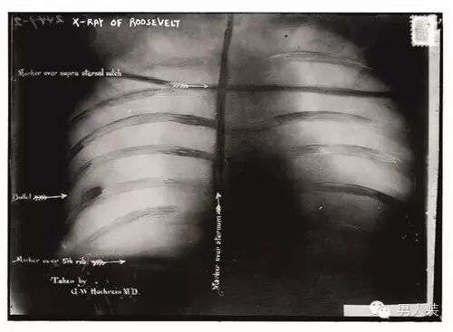 事件之后拍下的罗斯福胸腔X 光片,可以看到子弹射入的位置。