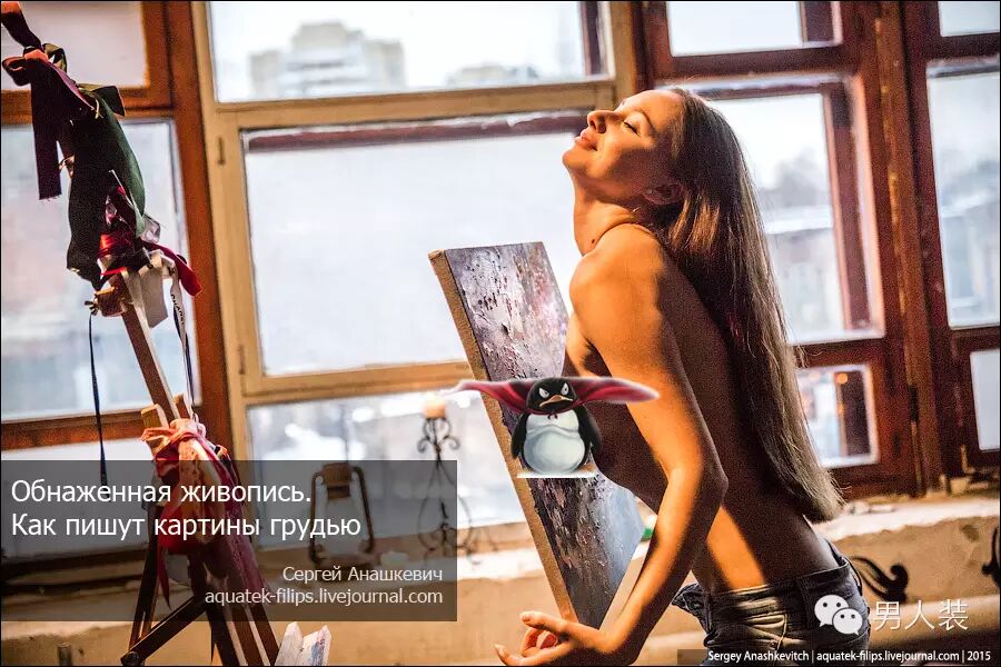 A:一起聊天的时候朋友胡诌了一句“你可以用胸部来画个什么东西。”我回答说:“好的,我会画的。”后来有一天,我很无聊,没什么事要做,就想做一些有创造性的事情,我只是拿了胸部蘸了一些油漆在画布上画画。但这只是一次不完整的工作,粗略地说,就是个鬼画符。但我还是把它展示在了我的博客上并拍卖,想看看会发生什么。大家开始竞价,最终它以12万卢布的价格被人买走。