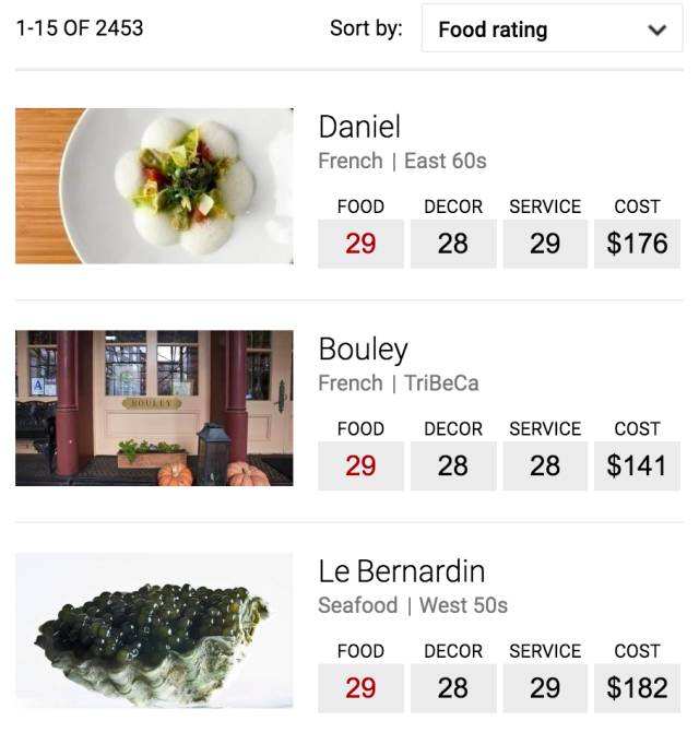 此外,很多餐厅很看重自己的Zagat评分,因为这是用钱买不到的排名!Zagat也不像其他点评网站,有相当数量的水军和竞价广告。