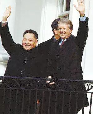 ▲ 1979年1月,邓小平与卡特在白宫阳台上向人们挥手致意