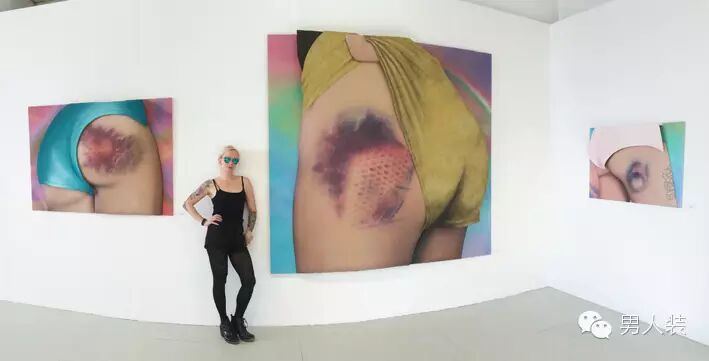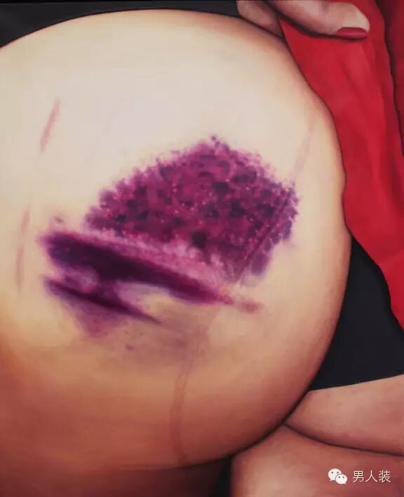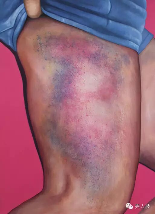 这位漂亮妞儿专门画姑娘的屁股,还是有瘀青的那种。别想歪了,那是正经做轮滑运动摔出来的瘀青。Riikka Hyvönen自己本身也是轮滑运动的爱好者,比赛的时候自然也没少摔,摔多了也就摔出灵感来了。大家会因各种奇怪的原因关注这组作品,但RIikka觉得挺无所谓的,反正艺术就是一百个人心中有一百个哈姆雷特,人腐则见基,人要污,看啥都是嘿嘿嘿……