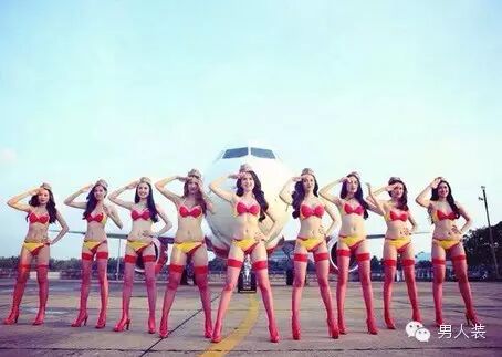 几名“空姐”(其实是模特)身穿比基尼在飞机前大摆POSS的画面,透过屏幕就能闻到身体的味道。