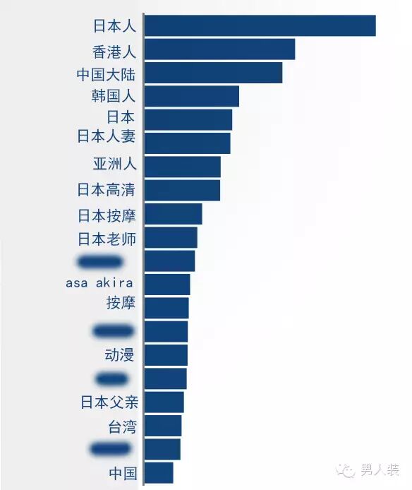 在意大利、捷克共和国等地,搜索频率最高的词通常与本国或邻国有关。香港用户搜索的前20个高频词中,有16个与“日本人”、“香港”、“韩国人”、“台湾”或“中国”有关。“日本人”是他们最常观看的类型,而“中国人”排行第三。