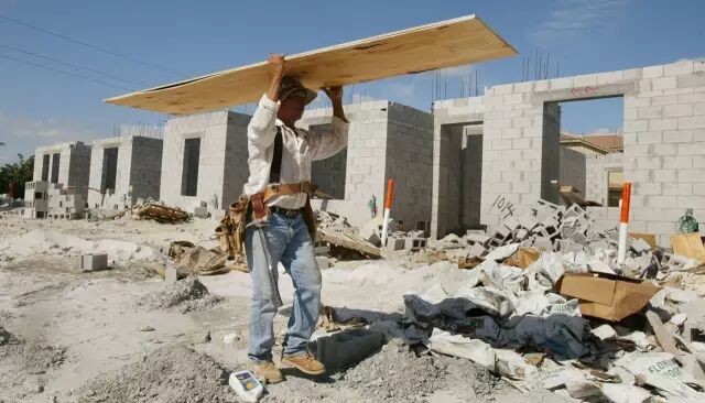 这是一个居民小区。八座房子,从蓝图看,有四室一厅的、五室一厅带地下室的,有一个后院做好游泳池了,有的房子还在木架结构阶段,透过密集木架,不难想象未来客厅摆着大电视,扔满塑料玩具,停车道的BMW,花园里玫瑰茂盛。八年前经济危机时候,建筑商破产了,预买房的人银行信用危机了,这里一切停摆了。游泳池,雨水加雪化经年积水,水上飘满落叶。现在这片废墟又有了新领主,雇佣詹姆斯王做完小区。八座房子在不同的建筑阶段,在铺房顶的,在嵌门窗的,在喷外墙漆刷内壁粉的,在铺地毯的;原先支起竖预制件的,木料腐败了,全部扒掉重新来。八座房子,铺开一片建房过程的全景图。