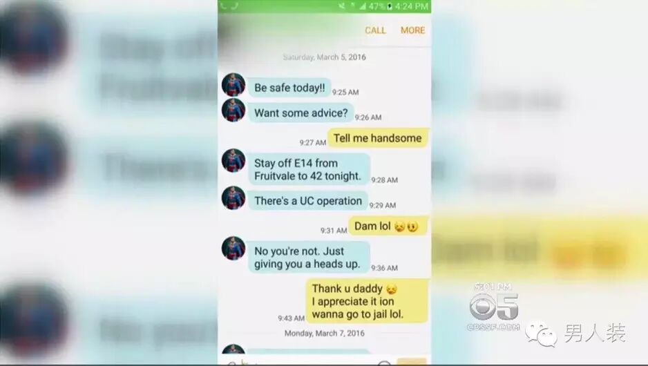 ▲Guap手机截屏显示自己与一位外号“超人”的警察对话: