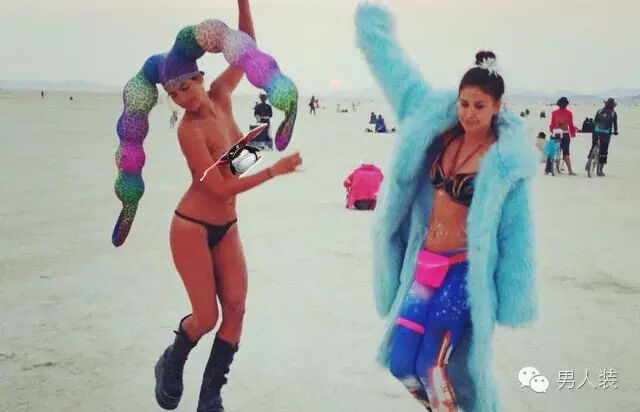 Burning Man不是一个纯粹的果体狂欢活动,实际上是一个范围更大更广的反传统狂欢节,聚集了一批前卫艺术家,雅皮士,嬉皮士。1986年创办后,该活动每年举办地都选在美国内华达州黑岩沙漠(Black Rock Desert)。从每年八月的最后一个星期天到九月的第一个星期一,活动参与者在沙漠中凭空创造出一个寿命只有8天的“城市”,之后又悄无声息地离开。活动提倡自给自足及自由表达,像果奔这种事情,在玩脱了的“当地人”看来,真的只是小菜一碟,所以也并不少见。