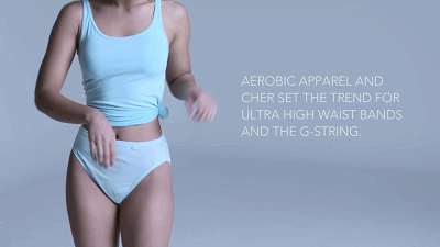 女星雪儿(Cher)和有氧运动的流行,使超高腰内裤和丁字裤成为时尚