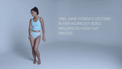 1982年,简·方达(Jane Fonda)因为在她的视频里穿了紧身衣,从而推动了高腰内裤的发展