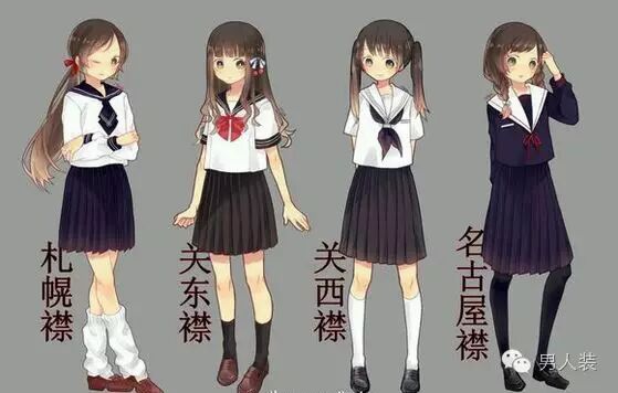 发展到现代,日本各地的水手服“百花齐放,百家争鸣”,因为领巾的不同,现代水手服被分为了4种:关西襟,关东襟,礼幌襟和名古屋襟。