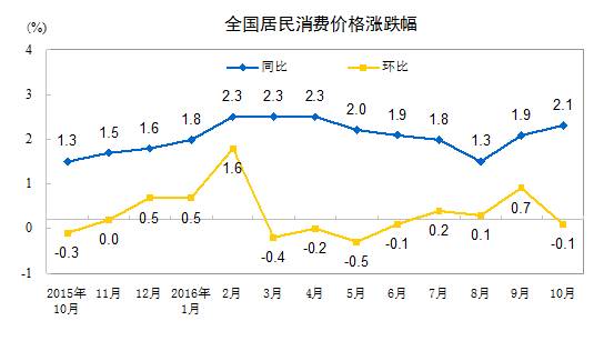 11月9日消息,中国10月CPI同比2.1%,预期2.1%,前值1.9%;其中食品价格上涨3.7%,非食品价格上涨1.7%。PPI同比1.2%,预期0.9%,前值0.1%。(国家统计局网站)