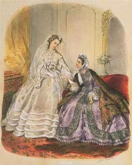 直至1840年,英国维多利亚女王(Alexandrina Victoria,1819-1901)穿上历史上第一套洁白婚纱。从此以后,世间女子改变了自己的婚礼礼服风格。