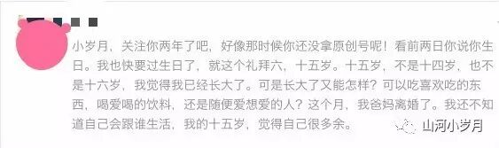 今天这位读者,应该是最早一批关注“山河小岁月”的。在后台私信里,她这样说:
