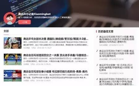 《今日头条》的头条实验室与北京大学计算所联合研发的"Xiaomingbot"机器写作系统,在2016奥运会期间发布的体育报道