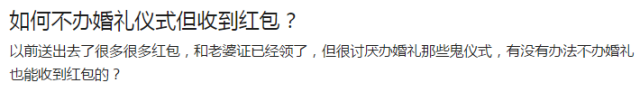 甚至压根儿不想办婚礼的年轻人都在琢磨:不办宴席又想收份子钱,咋办?