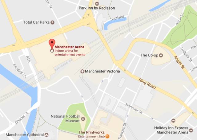△ 发生爆炸的曼彻斯特体育馆位于曼彻斯特市中心附近,是欧洲第二大室内体育馆,可容纳21000人。事发当晚,体育馆内正在举行美国歌手爱莉安娜 · 格兰德(Ariana Grande)的演唱会,全场基本满座。
