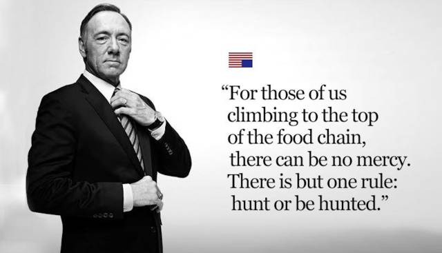 我们一定要牢记,对于爬到食物链顶端的人来说,没有仁慈可言,规矩只有一条:Hunt or be hunted(收割或者被收割)。