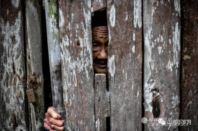 韦绍兰站在那里,谢绝了别人搀扶。她忽然慢慢摸着墙壁,走进那间屋子,观赏木门,透过门上的缺口向外凝望,留下了这张照片: