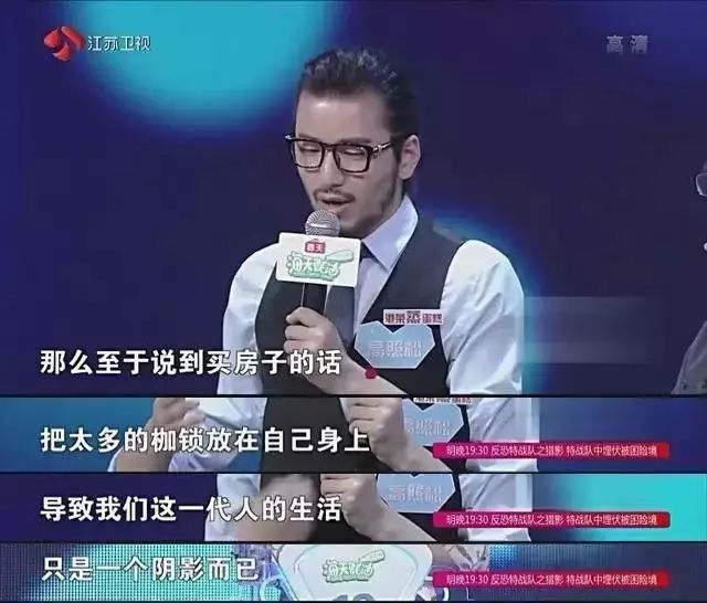 “我很好奇男嘉宾为什么说买了房子就把你的人生毁了,就不能出去旅游了。我觉得这个说到底,还是因为没有那么多钱吧。如果你真的有钱的话,你买了房子不照样可以去玩吗?”