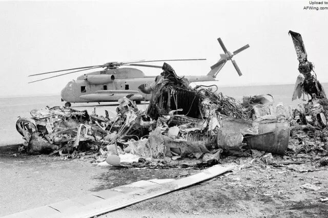 “鹰爪行动”留在伊朗沙漠中的一地残骸。如果当时有V-22“鱼鹰”,就可以无需降落,一路直飞德黑兰