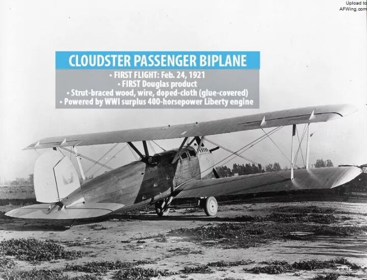 道格拉斯的开山之作“云中行者”号飞机,摄于该机问世后不久的1921年。该机当时被认为是第一架能够承载超过其自身重量的有用载荷的飞机。该机最终被改装成了一架10座客机