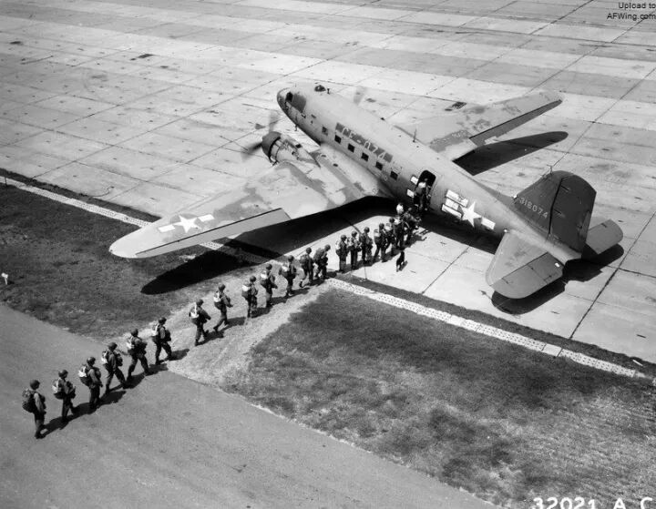 美国佐治亚州本宁堡(Ft. Benning)空降学校的学员们正在登上一架道格拉斯C-47飞机进行跳伞训练,时间是1946年。道格拉斯公司制造了数以千计的C-47飞机,而且多达3000多架此类飞机是在苏联和日本境内按许可证生产的