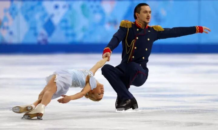 △ 俄罗斯双人滑选手沃洛索扎/塔兰科夫在索契冬奥会上拿到金牌 来源:Los Angeles Time