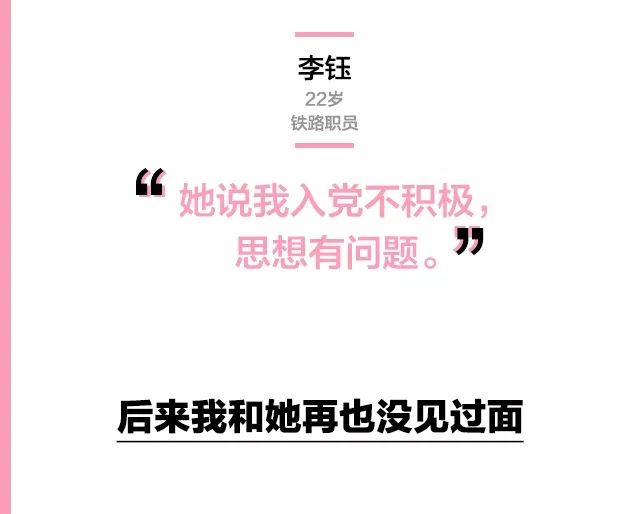 然后隔了段时间她问我,你为啥不入党?你啥时候入党?我说我单位党员名额比较少,等过一段时间。之后她就说我思想不积极,应该主动要求入党。再然后,我们之间也没有下文了。