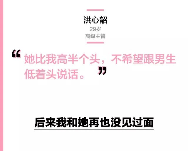 但总有人得戳穿这层窗户纸啊,我就问她有多高,女生说自己光脚1米72,今天穿着高跟鞋应该有1米81,然后我故意说,我不习惯跟女生仰着头说话。这话可能刺激到她了,她也回敬了一句:我也很不希望跟男生低着头说话。