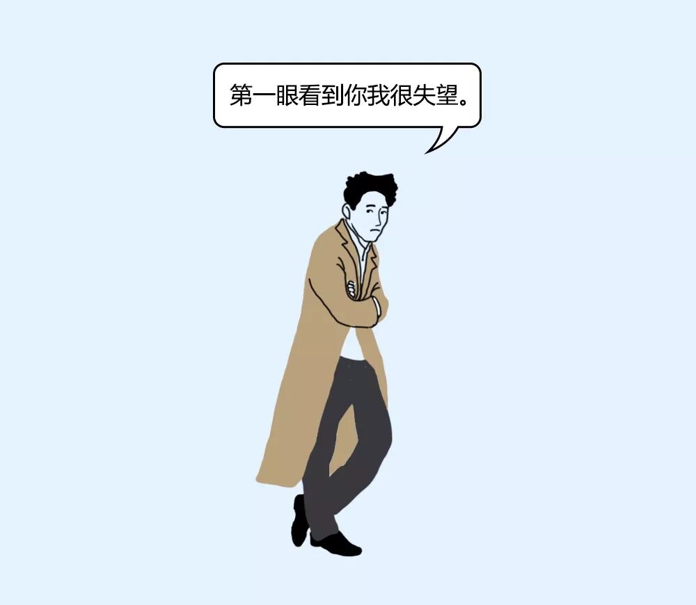 紧接着,L来了句:“我不喜欢你。为什么呢?因为我看到你第一眼没有性冲动。”我被这话吓了一跳。他继续说个不停,“不过鉴于是亲戚介绍的,我还是要给你一点建议。第一眼看到你时,发现你戴着围巾,我很失望,你一点都不重视我们的见面,要温度不要风度。像我,就穿一风衣,围巾都没围,我不冷吗?可我要风度。”我就心想了,你这身高,穿长款风衣又不好看,得瑟什么呢。但没等我回话,他又开始吐槽了。