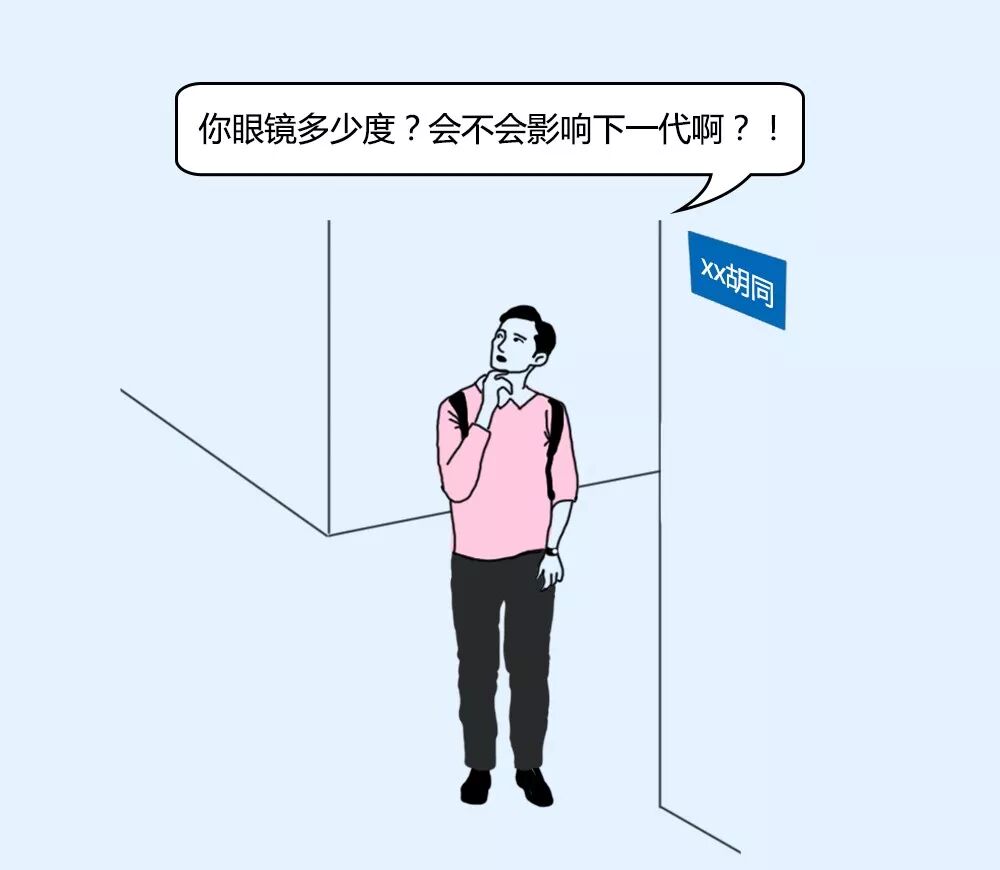 然后他又问:“你眼镜多少度?会不会影响下一代啊?!”