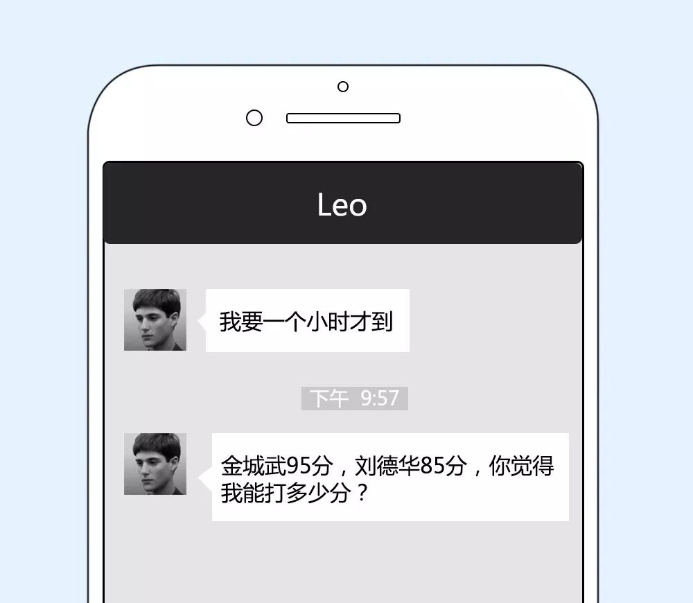 聊完后分别了,他又立刻给我发了一条短信:“金城武95分,刘德华85分,你觉得我能打多少分?”