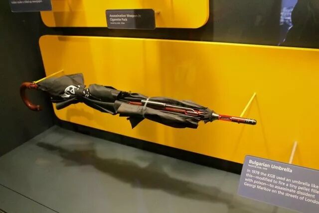 “冷战”后期比较著名的暗杀事件发生在1987年,一名逃亡伦敦的保加利亚作家乔治·马可夫在前往BBC上班途中被一名男子用雨伞刺中,送医三天后死亡。调查人员事后从他体内发现一枚直径1.52毫米的金属珠,其中含有致命且无法治愈的蓖麻毒素。乔治·马可夫生前是保加利亚政权的激烈批评者,这一暗杀事件被认为是保加利亚情报部门所为,涉案的雨伞被命名为“保加利亚雨伞”,现藏于美国华盛顿国际间谍博物馆。根据变节的前苏联情报人员称,前苏联的“克格勃”情报机关为这起暗杀行动提供了支持。